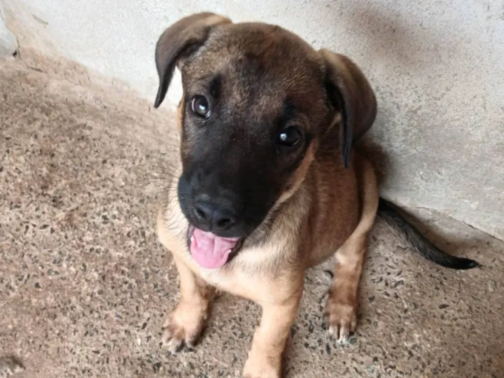 É uma fêmea de 2 meses e 15 dias, filha de um pastor belga malinois com uma pitbull red nose. Não consigo criá-la pois o quintal é pequeno e já tenho dois cachorros.