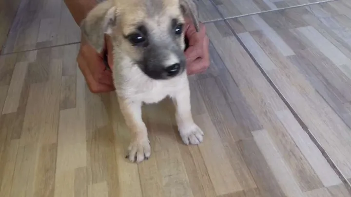 Achei este cachorro não sei qual a raça e nem o porte dele, espero que vocês posso mim ajudar pois já tenho uma cachorra e minha casa e pequena não cabe mais um