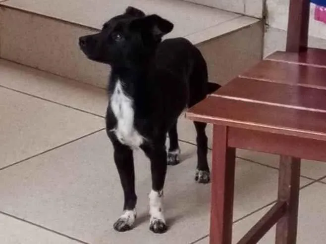 Resgatei este cachorrinho da rua, queria ficar com ele, mas estou fazendo tratamento de câncer e não estou conseguindo cuidar dele. Ele é cheio de energia, brincalhão. Precisa de um lar com quintal