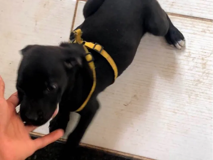 Conheça o Puma, um adorável cão macho da raça Staffbull. Com uma pelagem preta encantadora e uma idade entre 2 a 6 meses, ele promete ser o novo membro do seu lar que você estava procurando. De porte médio, Puma é o companheiro perfeito para qualquer tipo de ambiente, adaptando-se facilmente tanto a casas com quintal como a apartamentos. Seu temperamento dócil faz dele um amigo inseparável, e sua sociabilidade é sua marca registrada. Puma se dá bem com gatos e outros cachorros, além de ser extremamente amigável com crianças, idosos e até desconhecidos. Se você busca um amigo leal e companheiro para a vida toda, Puma é o cãozinho ideal, pronto para trazer alegria e amor para a sua família. Adote o Puma e garanta uma amizade verdadeira e divertida.