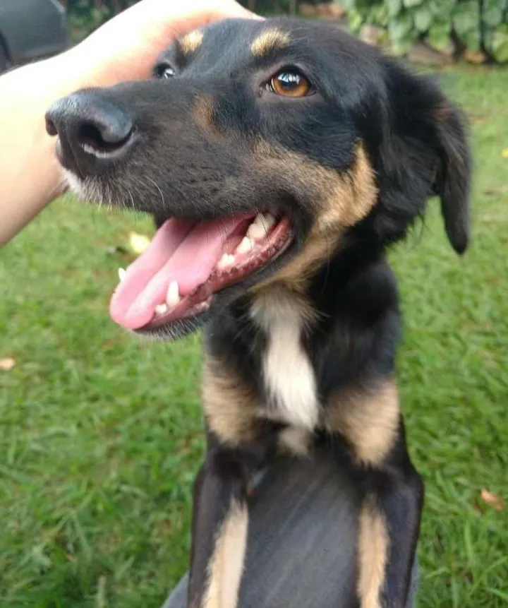 Cachorrinha muito dócil e esperta. Adora brincar e receber carinho. Foi encontrada na rua há dois meses com a pata machucada, desde então vem recebendo cuidado e está ótima. Mas precisa de um dono que possa cuidar dela.