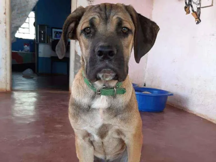 É o cachorro do meu sogro, ele ajuda na chácara, sumiu no dia 06/02/2021 estamos a procura dede então. Ele tem a pelagem meio marrom escuro, braquiocefálico e atende pelo nome de Perigoso. Ele se parece um pouco com um cachorro da raça fila, mas ainda pequeno. Por favor quem encontrar ele nos informe.