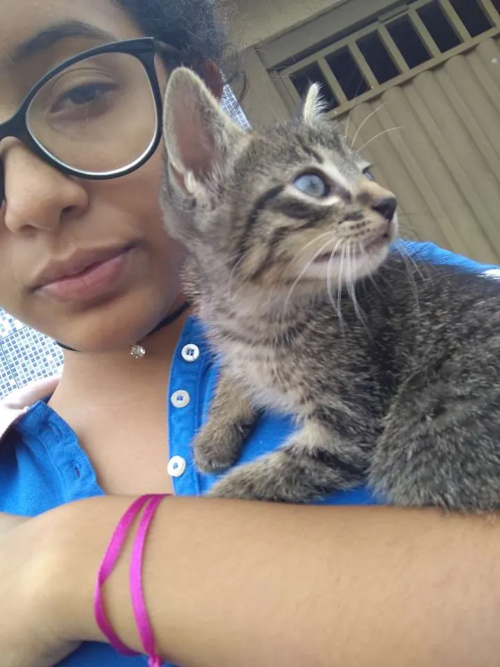 Ele tem olhos azuis meio esverdeado , tem a pelagem parecida com uma de um tigrezinho , ele é bem carinhoso , brincalhão , e está a procura de uma nova família para poder ser a alegria da casa !!