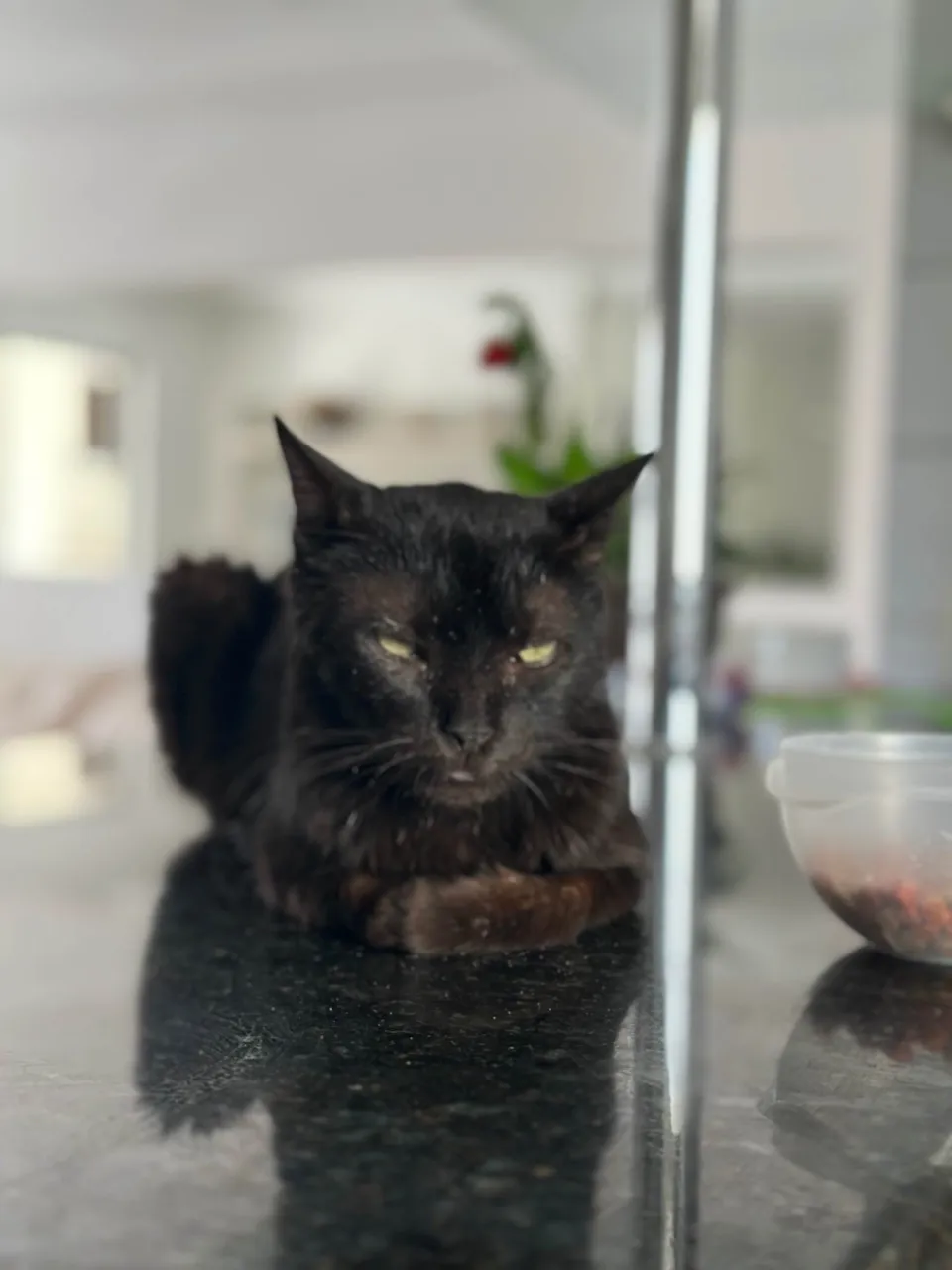 Encontrei ele esse gatinho na porta de um prédio no jardim Goiás, enquanto aguardava uma amiga ele sentiu no meu colo e ficou. Já levei ele no veterinário e viram q é castrado ou o testiculo pode estar pra dentro. Ele deve ter uma faixa de 4 anos de idade.