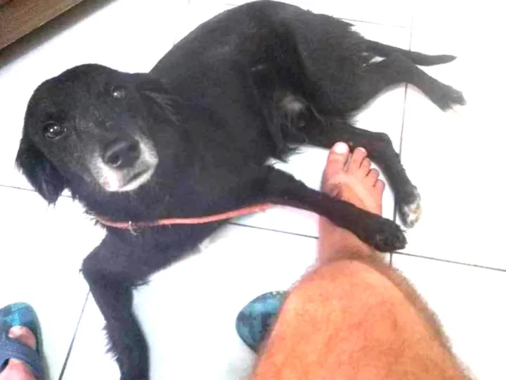Cachorro apareceu na minha casa e muito dócil e bonito só não fico com ele pq a minha casa e muito pequena