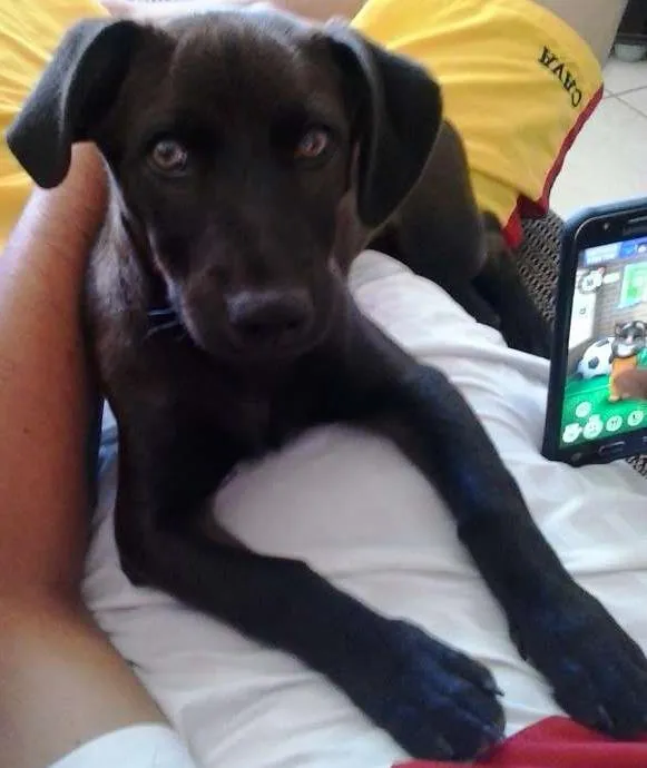 Cãozinho dócil cor preta acinzentado. Muito calmo nao late muito carinhoso adora brincar. Estamos doando com dó por nao ter tempo para cuidar dele.pois trabalhamos o dia inteiro e ele fica muito tempo sozinho.