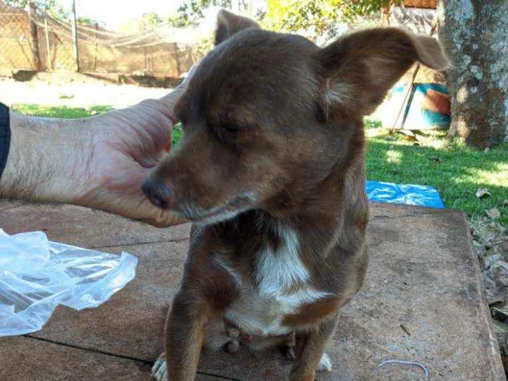 Apareceu aqui na chácara dois animais, um macho e uma fêmea de pequeno porte. Fêmea parece Shitzu e o macho parece um pincho gordo. Não tenho como ficar com eles, pois já cuidamos de cinco animais.