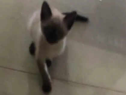 É um filhote cinza,de olhos azuis,bastante brincalhona,se chama Cadu ,pois no começo achamos q era macho ai ela se acostumou com o nome