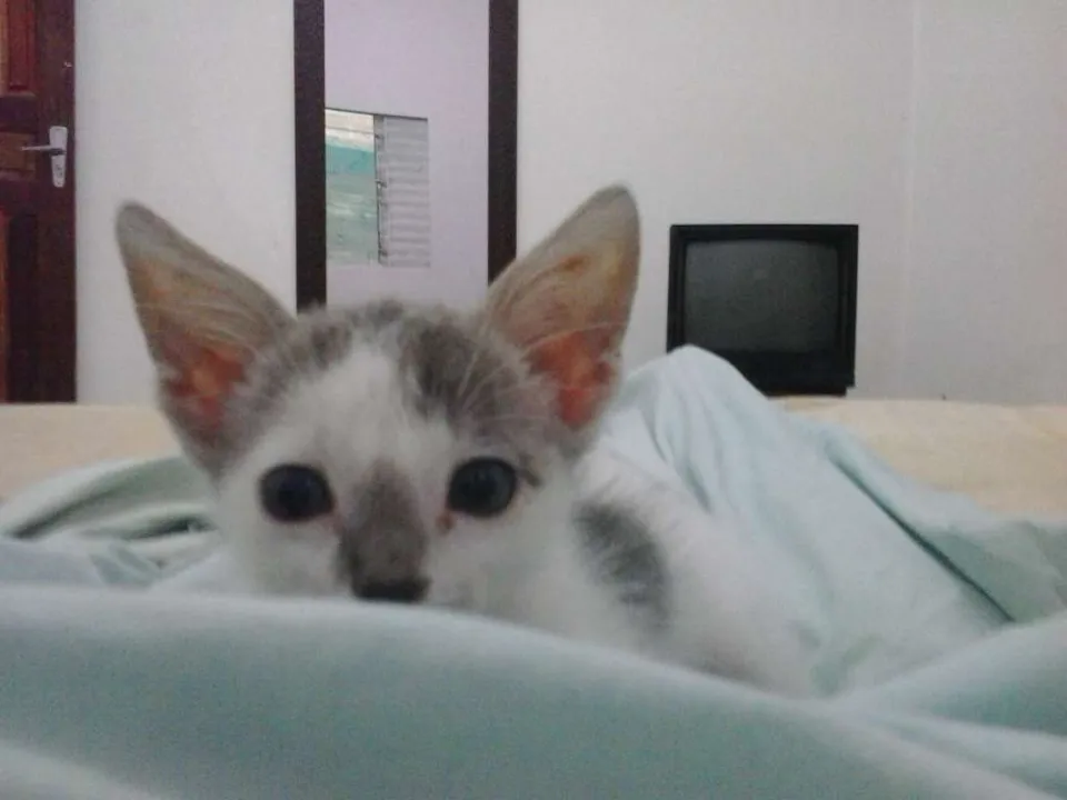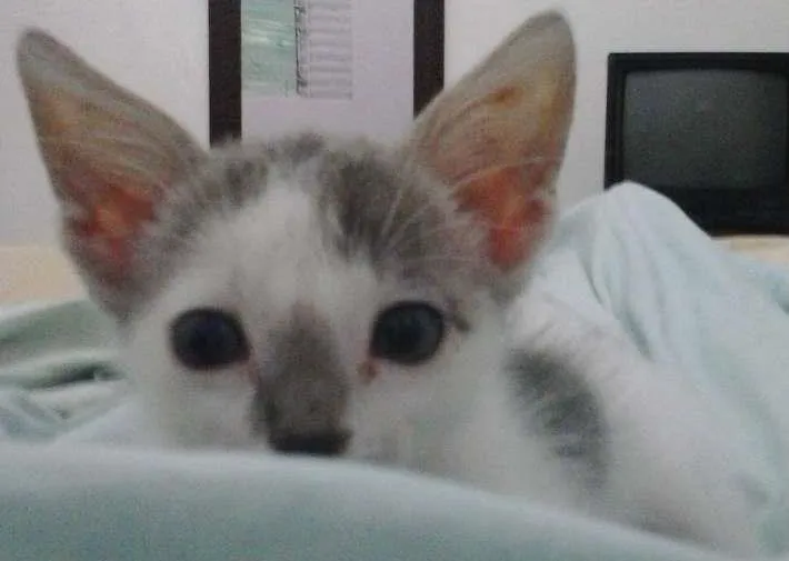Deixaram no meu portão, ele era bebê não tinha ainda os dentes, fiquei com do e peguei ele, comecei fazendo igual bebê dando chuquinha para ele, levantava três vezes a noite para dar mama pra ele, hoje ele ja esta comendo.como eu sou cadeirante e vou voltar para São Paulo quero deixar ele com alguém que cuide e de carinho para ele