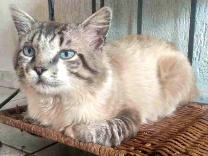 Mingau foi abandonado por uma vizinha e não posso ficar com ele, é um gatinho muito carinhoso e quieto, não fica subindo nas coisas, é obediente e não puxa briga com outros gatos, tudo que precisa é de um pouquinho de afeto e atenção para ficar satisfeito! Adora se mostrar rolando no chão, brincar com cordinhas, de conversar respondendo com miados super fofos e receber carinho no rosto. É muito dócil e sociável, aceita aproximação de todo mundo, tem o pelo super bonito e olhos azuis que ele com certeza vai usar como chantagem para você lhe servir mais comida rsrs. Esse gato calminho com certeza será uma ótima companhia para quem adotá-lo <3