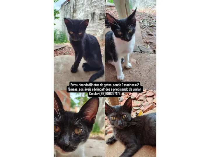 Encontramos filhotes de gatos, sendo 2 fêmeas e 2 machos, todos com pelagem branca e preta. Eles têm idades entre 2 a 6 meses e são de porte pequeno. Esses adoráveis filhotes possuem temperamentos dóceis, calmos, brincalhões e sociáveis. Eles se adaptam bem a casas com quintal e também a apartamentos, tornando-se ótimos companheiros para diversas situações. Além de serem carinhosos, vivem harmoniosamente com outros gatos e até mesmo com cachorros. É importante ressaltar que eles precisam de cuidados especiais devido à sua pele sensível, requerendo atenção extra em relação à temperatura e proteção solar. Se você está em busca de um amigo fiel e divertido, esses filhotes são a escolha perfeita!