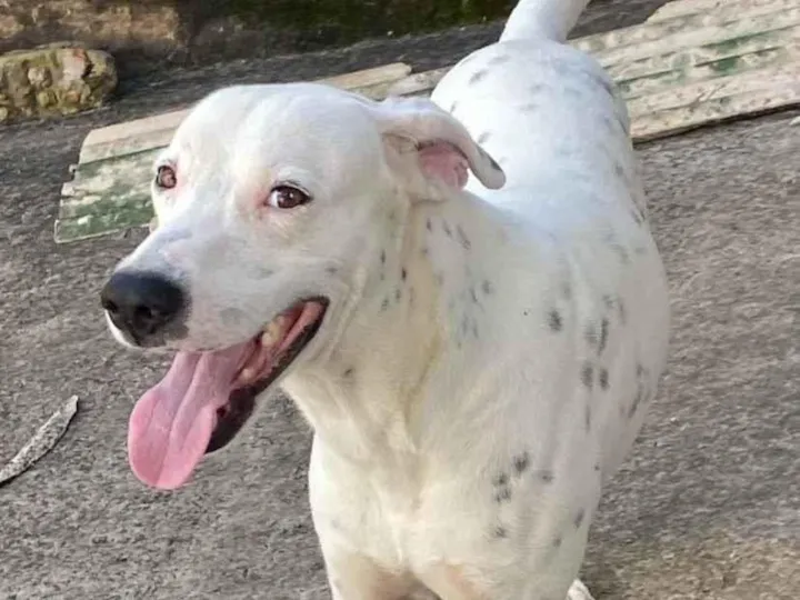 Conheça o Albino, um adorável Dálmata macho em busca de um novo lar. Com pelagem branca e preta característica da raça, Albino tem entre 2 e 6 meses de idade e promete crescer e se tornar um cão de porte grande. Ele já está vacinado, garantindo sua saúde e proteção. Albino é um filhote cheio de energia e, como qualquer jovem da sua idade, está aprendendo a se comportar. Ele pode ser um pouco agressivo, portanto, precisará de um tutor experiente que saiba impor limites de forma gentil e positiva. Ele se adapta bem a ambientes com quintais espaçosos, onde possa brincar e gastar seu excesso de energia. Apesar de sua natureza um tanto desafiadora, Albino é bastante sociável com outros cães e poderia ser um ótimo companheiro para famílias que já tenham outros amigos de quatro patas. Se você está preparado para dar a ele orientação e amor, Albino será uma companhia leal e dedicada. Adote o Albino e ganhe um amigo para a vida toda!