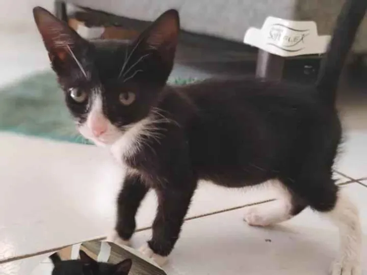 Gatinha de pelagem preto e branco, pequena ainda, uns dois meses aproximados. Muito brincalhona e dócil. Já usa até a caixinha de areia, muito inteligente.Achada em um beco, e resgatada só pra não morrer, precisa de um dono urgente.
