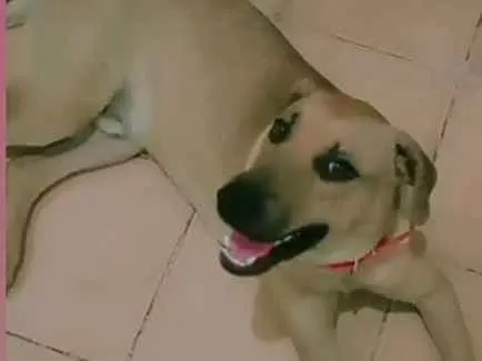 Ele está com uma coleira vermelha,ele é brincalhão, dócil, não é valente
