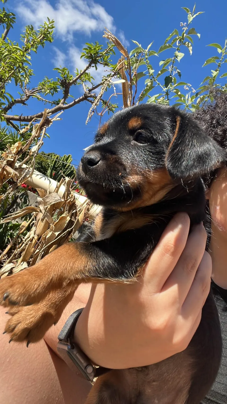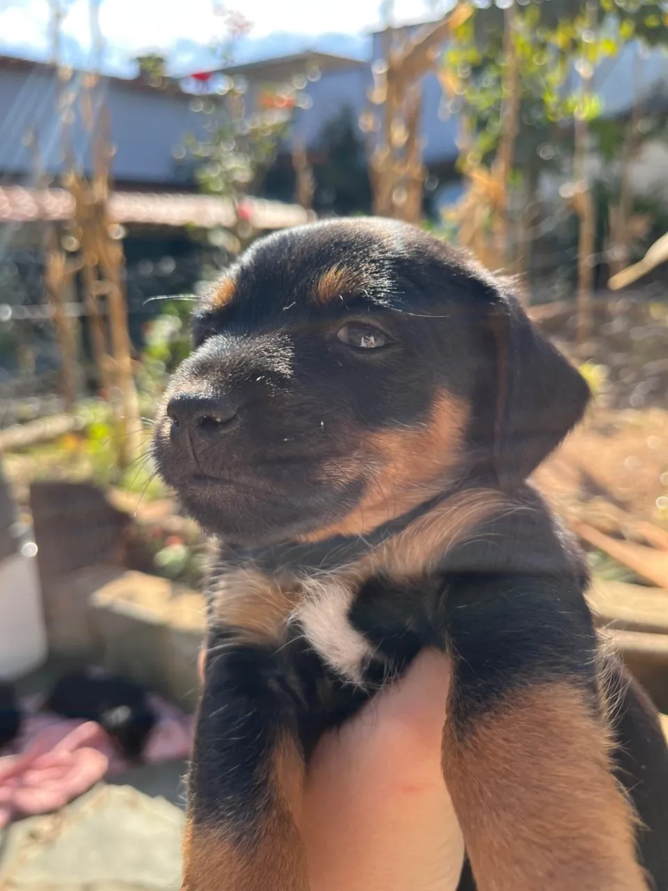 Resgatei uma cadelinha porte pequeno (5kg) em abril e ela estava grávida. Deu a luz a 6 cachorrinhos, entre eles Luisinho. Ele tem 2 meses, vermifugado e com a primeira dose da V8.