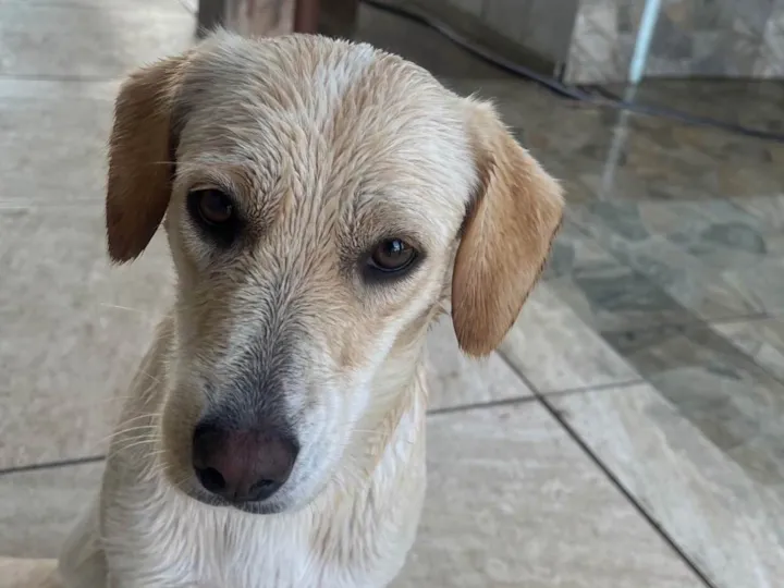 Essa é a Luna, uma encantadora cadela SRD de 2 anos com pelagem branca e porte médio. Sua natureza dócil e brincalhona faz dela a companhia ideal para qualquer família! ??