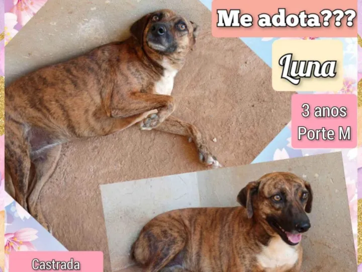 Conheça a Luna, uma adorável cadelinha da raça SRD-ViraLata, com 3 anos de idade. Sua pelagem rajada e porte médio não são seus únicos charmes, pois Luna tem um temperamento que conquista a todos. Castrada, vacinada e vermifugada, ela está pronta para fazer parte de sua família. Extremamente dócil e calma, Luna também adora brincar, sendo uma companheira perfeita para momentos de diversão. Sua natureza sociável a torna uma excelente companhia não só para crianças e idosos, mas também para desconhecidos. Luna vive bem tanto em casas com quintal quanto em apartamentos, adaptando-se facilmente ao ambiente que a cerca. Além disso, ela é carente de carinho, sempre buscando por amor e atenção. Adotar a Luna é garantir um lar cheio de alegria e afeto. Se você procura uma amiga leal e companheira, ela é a escolha ideal. Abra as portas do seu coração e do seu lar para Luna e descubra a felicidade de ter uma parceira tão especial ao seu lado.
