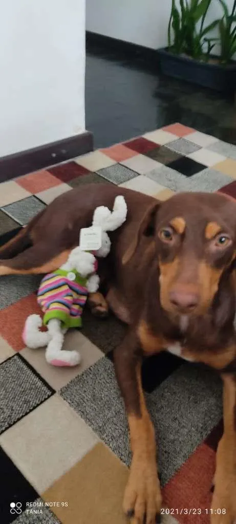 Cadela de aproximadamente 01 ano encontrada no bairro Serra Verde. Precisa urgente de um lar. Carinhosa, dócil e se dá bem com cães e gatos. Foi, maldosamente, afastada dos seus filhotes e estava muito triste. Foi acolhida por uma amiga que mora na região mas que, infelizmente, não tem como ficar com ela. Adote esse ANJO!!! Ela só precisa de uma família que a acolha!