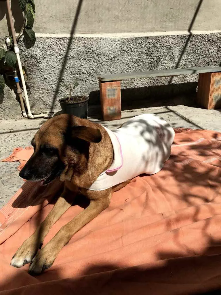 É castrada e passou por cirurgia de retirada do útero e ovários devido a uma infecção, já sem 100% recuperada pois já tem mais tempo.