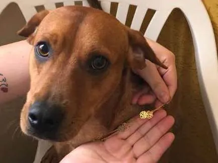 Cachorrinho de pelo curto, da cor marrom. Encontrado com uma correntinha (com florzinhas) dourada no pescoço. Está bem cuidado, com unhas cortadas. É muito dócil e educado, atende aos comandos dados. Meu telefone tem DDD 85 9904-7614. Sou de Fortaleza, mas moro em BH.