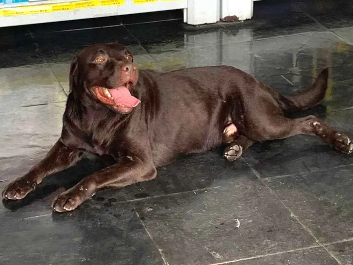 Procuro o dono! Cachorro macho da raça Labrador cor marrom apareceu na Rua Frei Otto, 61 - Bairro Santa Mônica em Belo Horizonte/MG por volta de 12h do dia 14/04/23. Ligar para (31) 98622-2383.