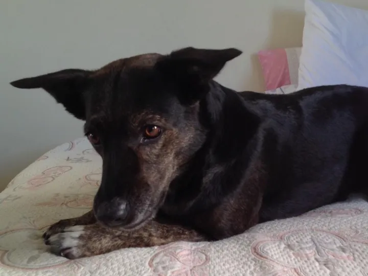 Encontrada no bairro Floresta, Zona leste de BH no dia 10/05/2017. Estava com uma carinha de pedindo socorro de tanta sede e fome. Com certeza tinha dono, porque é acostumada a não fazer xixi nem cocô dentro de casa, entende o que é passear, gosta de entrar debaixo da cama. Coloquei ela aqui no meu apartamento provisoriamente.