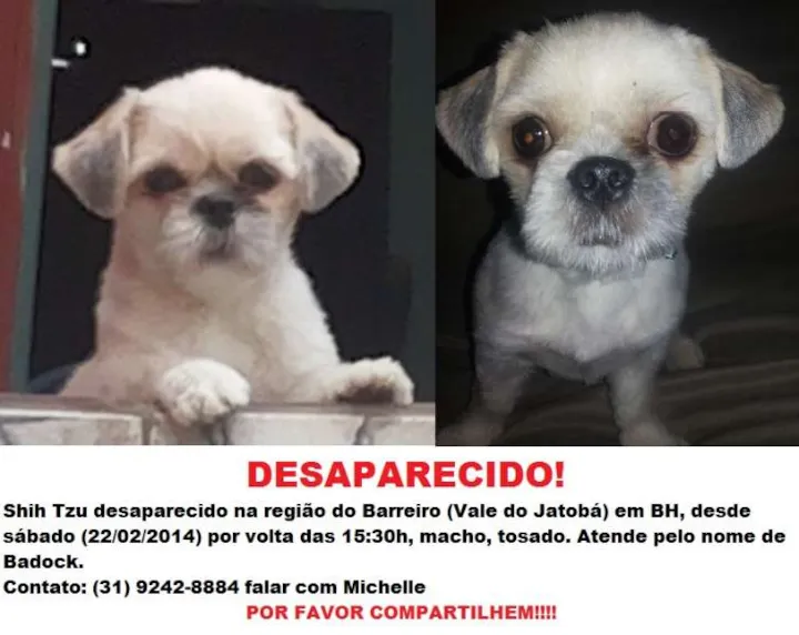 Shih Tzu desaparecido em Belo Horizonte na região do Barreiro (Vale do Jatobá) no dia 22/02 por volta das 15:30h.