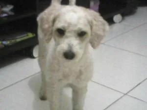 Procura-se cão da raça Poodle, atende pelo nome Chip, estava vestido com roupinha azul. Desaparecido dia 03/12/2013 (terça-feira) na região do bairro Padre Eustáquio em BH.