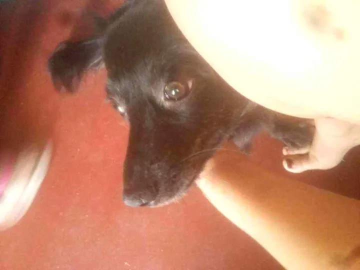 Ela é média um pouco medrosa e bem animada, tem a cabeça pequena e uns pelos brancos na pata e no rabo mais tirando isso ela é toda Preta. Seu nome e Luna ela é vira lata. E muito fácil de reconhecer