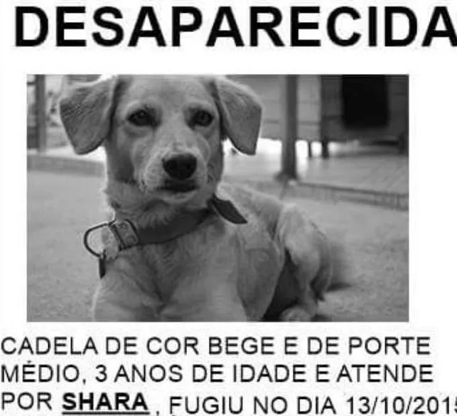 Atende por shara, fugiu de casa no dia 13/10/2015 por volta dás 7:30 da manhã no bairro Piratininga na região de venda nova em Belo horizonte. A família esta desesperada atrás da cadela pois Ela me muito querida, shara e uma cadela mança e não tinha costume de sair de casa, por tanto pode estar perdida.