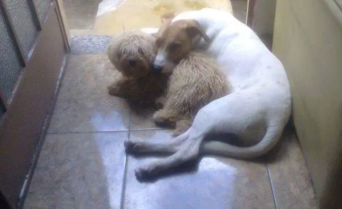 O Lucky (o branco) é um vira-lata de grande porte, ambos, muito dóceis. Eles têm 7 meses. São dois bebês perdidos. Eles dormiam juntos, comiam juntos e brincavam o tempo todo. Meus telefones são 9165-6180 (TIM) e 7121-7207 (Vivo).