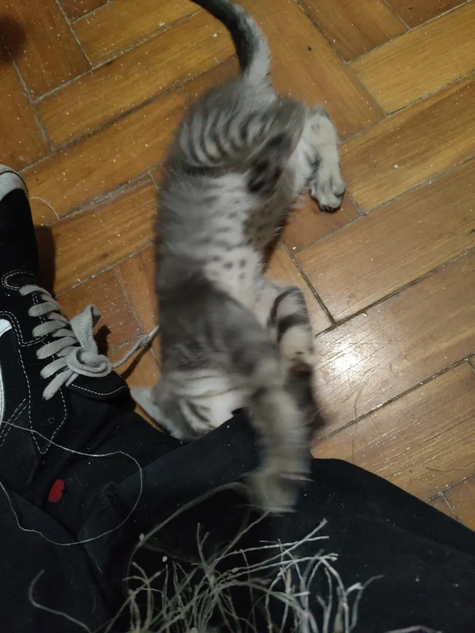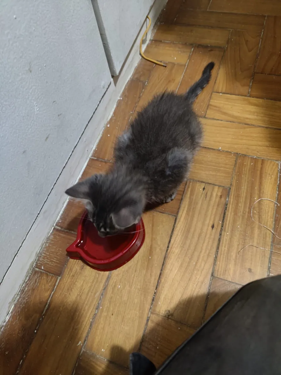 A gatinha filhote foi abandonada e colocada dentro da minha casa essa semana (Sagrada família- BH). Infelizmente já cuido de dois Akitas e está bem perigoso mantê-la aqui.Ela é bem docil e fizemos amizade muito rápido. Ela gosta muito de brincar e está sendo vacinada.
