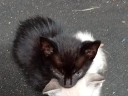 Nasci na rua com meus irmãozinhos. Queria crescer com dignidade e família! Sou um lindo gatinho preto! Me adota?Meu irmaozinho branco já levaram...