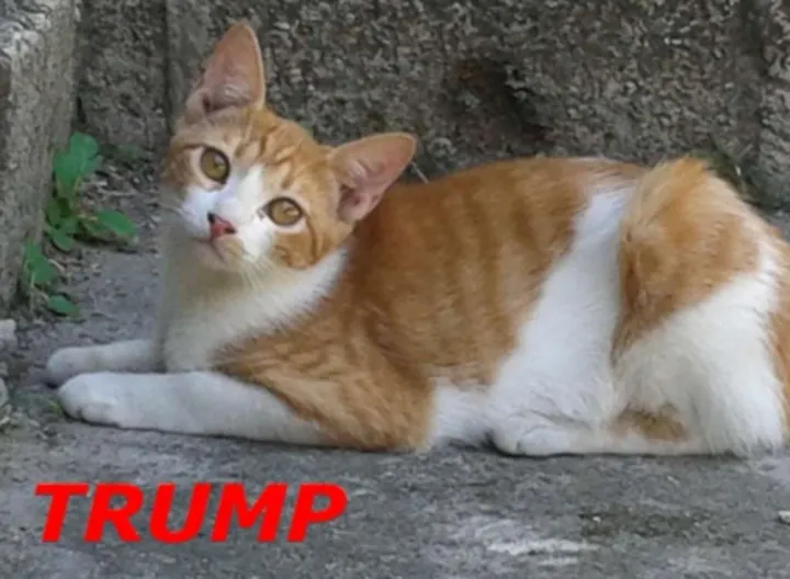 Clinton e Trump são dois irmãozinhos filhotes de uma gatinha que adotei, embora seja muito rebelde, hoje castrada. São dois machos muito brincalhões, fortes e bonitos, muito saudáveis. Gostaria que fossem adotados juntos, preferencialmente, já que estão sempre unidos. A diferença entre eles é sutil: Ambos são amarelo (ou alaranjado ou bege...) e branco, ligeiramente rajados. Clinton tem uma faixa branca nas costas e a manchinha do lado esquerdo da carinha; Trump tem manchinha do lado direito da carinha e é mais amarelinho ("Trump é mais alaranjado! ;)"... piadinha interna...).