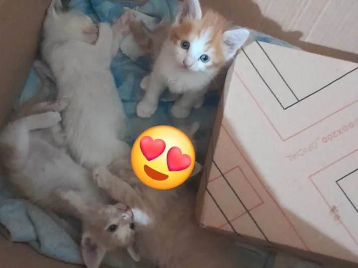 gatinhos super carinhosos e fofinhos, os laranjas são machos e a branquinha fêmea, resgatamos eles mas não temos condições de cuidar, eles precisam de um lar para receber muito amor e carinho!!