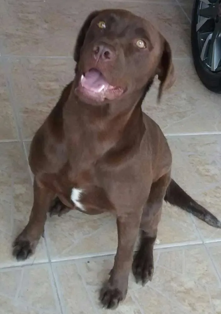 Perdemos um macho e uma fêmeas. Ambos são chocolates. Fêmea Kiara - 4 anos, ela tem uma pequena mancha branca no pescoço. Zeus 1 ano, todo chocolate, usava uma coleira branca no dia.