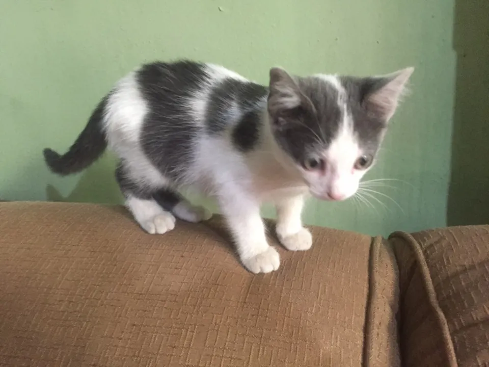 Leon é um gatinho curioso e muito carinhoso. Procura um lar bem amoroso pra retribuir todo seu carinho. Gosta de brincar de escalar. Olha só como ele e um gatinho ativo: não para quieto nem pra foto :P