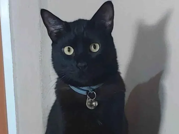 Gato preto, castrado, sem acesso àrua, fugiu por um descuido com a porta. Fugiu na madrugada do dia 09/05 na Rua Alan Kardec, bairro Kennedy, próximo à Avenida das Américas. Tem coleira com plaquinha de identificação. Ofereço gratificação.