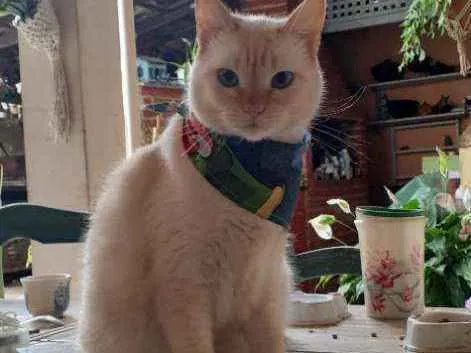 Gata grande, cor branca com algumas partes levemente amarelada,tem olhos bem azuis, atende pelo nome de Lola ou Lolô, é muito mansa mais é muito assustada e medrosa, sumiu dia 22/11/2020 no Bairro Bandeirantes Contagem