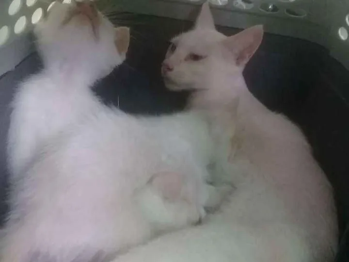 Estou doando quatro gatinhos brancos, 1 mamãe e 3 filhotes (doo separadamente)