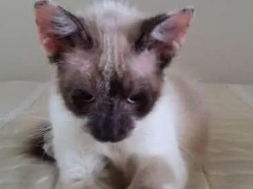 Esta gatinha foi resgatada desfalecida e desidratada. Ela já recebeu todos os cuidados necessários, mas ainda precisa continuar com tratamento, pois ela foi encontrada com alguns machucados e agora precisa de uma família para amá-la.