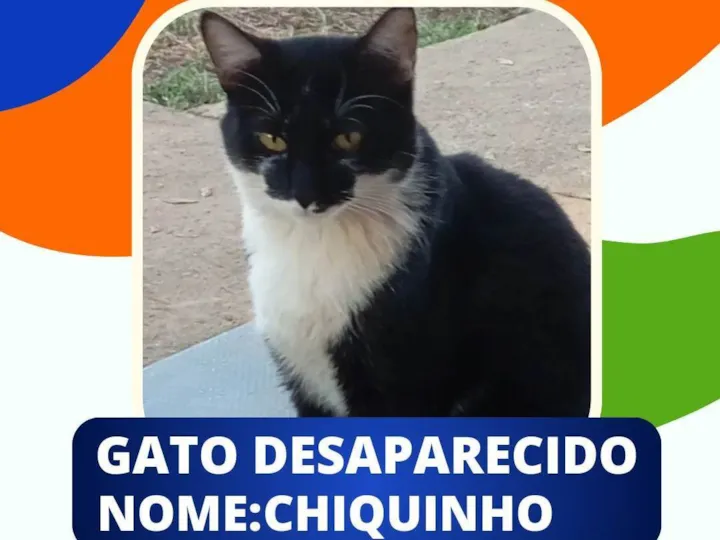 Atende-se por nome Chiquinho, ele é preto com pata e peitoral branco, macho não castrado. Sumiu na noite de 4 de agosto de 2024, na Rua Projetada Um, nº 235, Bairro Mandú na cidade de Itapeva-MG.