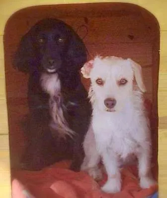 Ambos são calmos, acostumada com criança, deseis. A femeia é a Leka, cor preta, pelo liso e comprido, castrada, gorda (risos). O macho se chama Bob, cor branca (encardido, devido a mistura de raça) pelo liso mais curto. Os dois foram criados em ambientes maiores, como quintais.