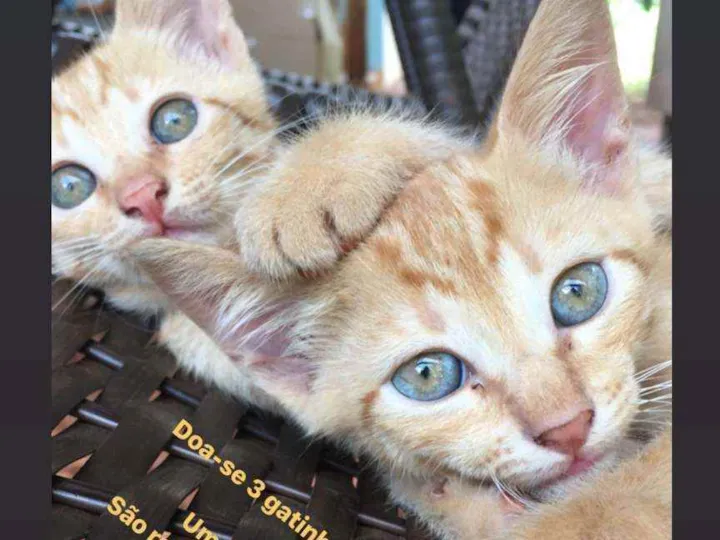 Gatos recém nascidos. Uma fêmea e dois machos. Rajados tons amarelo e olhos azul turquesa.