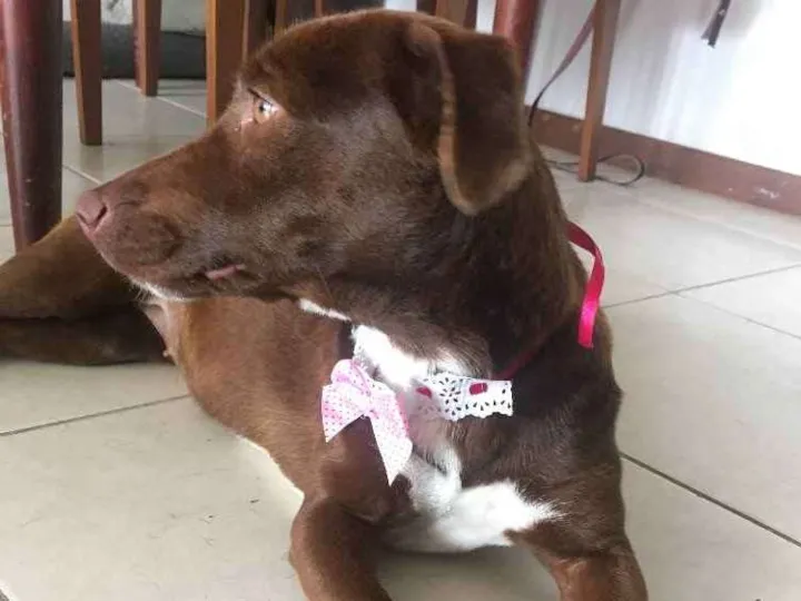 cachorrinha foi abandonada no bahamas. infelizmente não posso ficar pois já tenho uma e moro em apartamento pequeno.