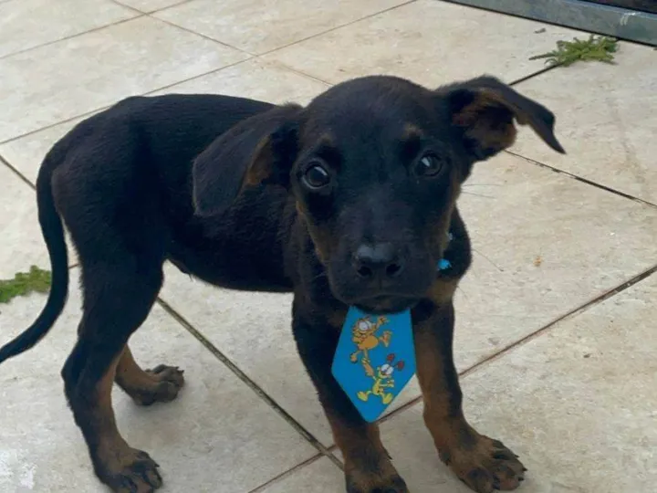 O Huguinho foi encontrado junto de sua irmã, Hana, em uma estrada de terra em meio a varias vacas que poderiam pisoteá-los. Foram deixados lá para morrer e estavam há alguns dias sem comer quando resgatamos... Hugo é mais calmo do que sua irmã, mas é brincalhão e gosta muito de um carinho! Ele sofreu muito durante o início de sua vida, mas foi ele quem correu atrás do meu carro para pedir ajuda... ele foi o corajoso que salvou a si e a irmã! Ele tem postura e tem uma personalidade mais calminha.