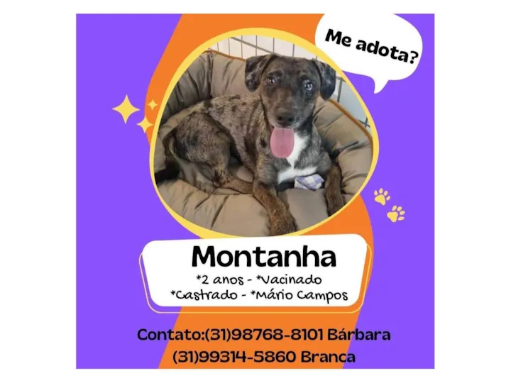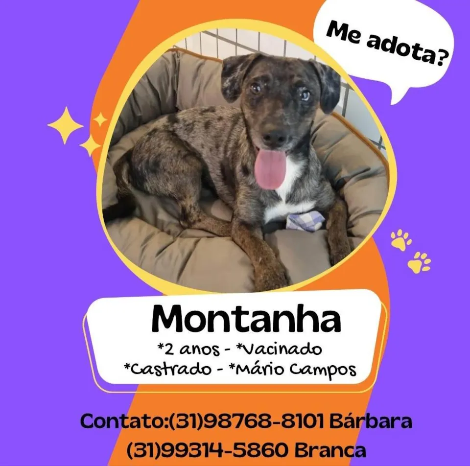 Conheça o Montanha, um adorável cãozinho de 2 anos, SRD-ViraLata, com uma pelagem rajada única que só acrescenta ao seu charme. Com um porte pequeno, Montanha é o companheiro perfeito para quem busca um amigo para todas as horas.