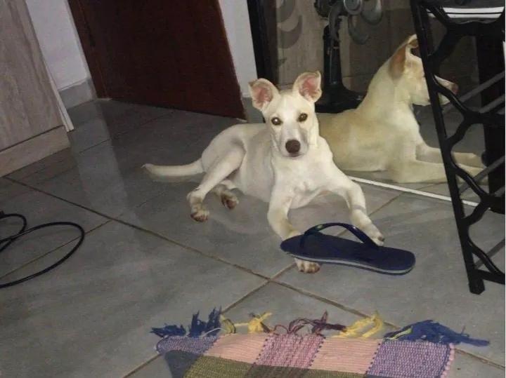 Adora brincar e correr, ainda não late quese nada, ama bolinha e muito sociavel , na foto ela não está comendo o chinelo kkk, a sapateira caiu e ela viu e deitou encima, ela é um amor, foi encontrada na rua,provavelmente abandonada e não temos condições de criá-la