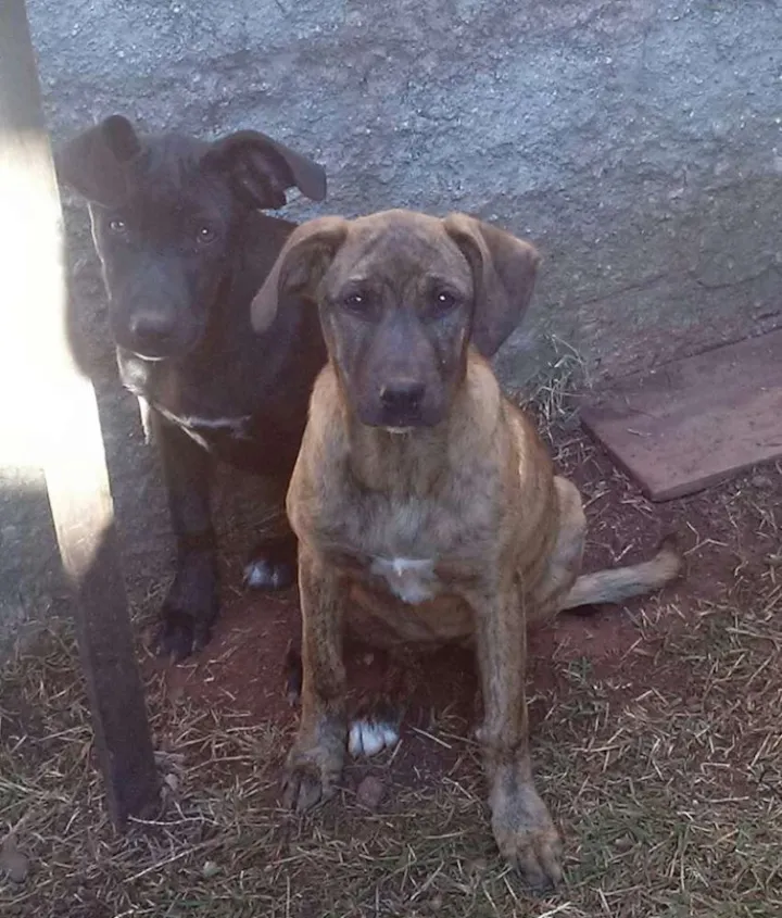 Ambos com 10 meses, irmãos, um macho e uma fêmea. Brincalhões e excelentes cães de guarda, estou doando pois vou morar em apartamento e não dá para os levar comigo.