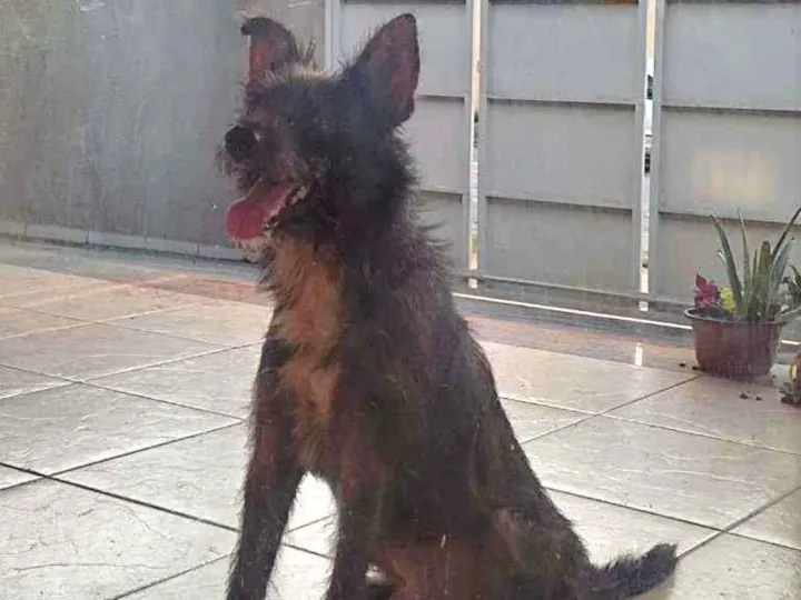 Um cachorro adulto que me acompanhou até em casa e não quis sair, muito carinhoso, brincalhão e gosta de atenção. Levado no veterinário, tomando medicamento para infecção no ouvido e sarna na orelha, e de banho tomado.